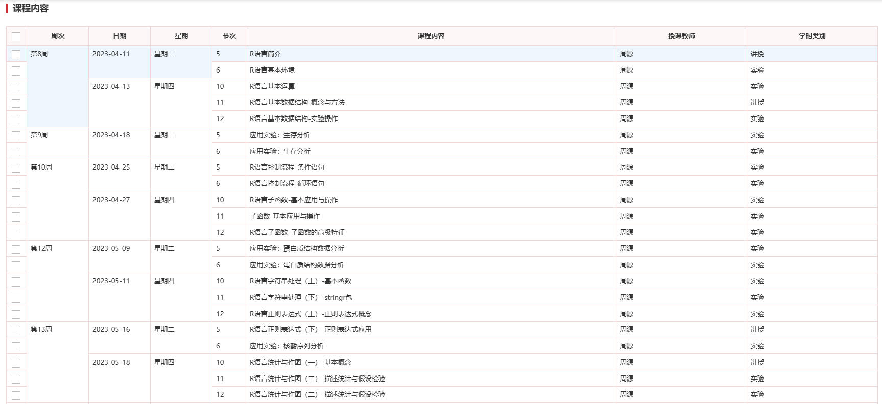 课程进度安排